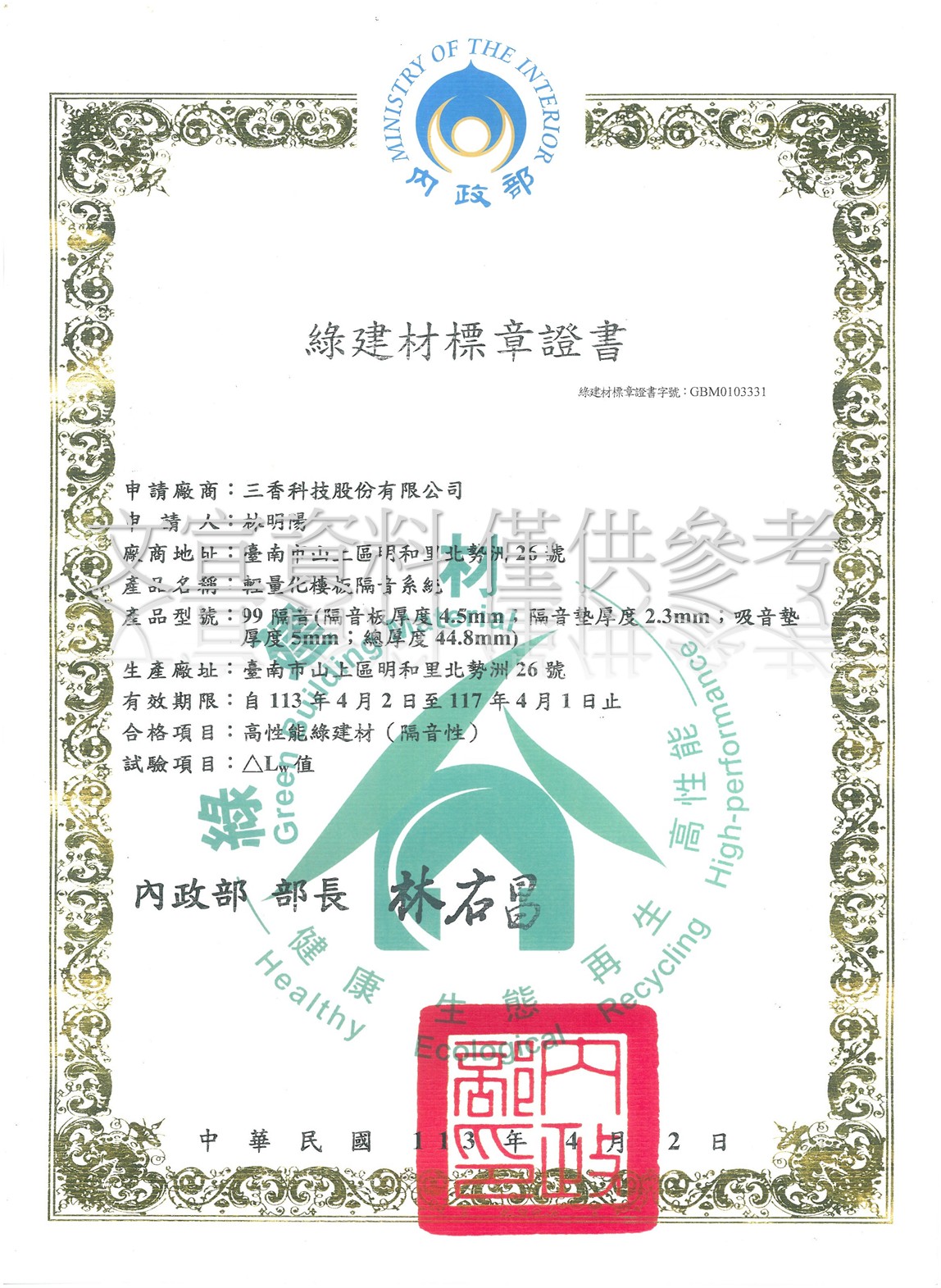 適合規格: ASTM E84 Class A、CNS 7614 防炎一級
